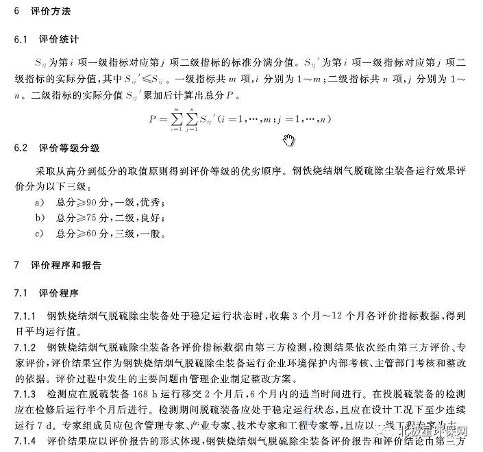 該《標準》適用于鋼鐵燒結(jié)煙氣石灰石/石灰-石膏法和氨法等式濕法脫硫裝備,煙氣循環(huán)流化床法和旋轉(zhuǎn)噴霧干燥法等半干法/干法脫硫裝備的運行效果評價,煙氣除塵使用的電除塵和袋式除塵器的運行效果評價,其他類似脫硫除塵工藝也可參照執(zhí)行。